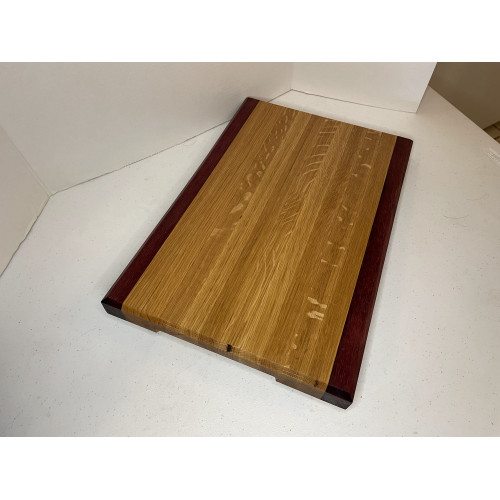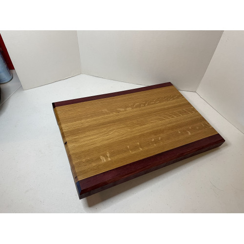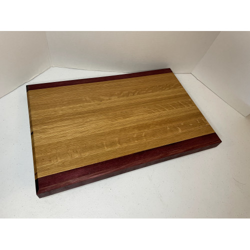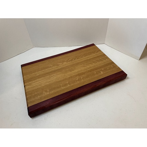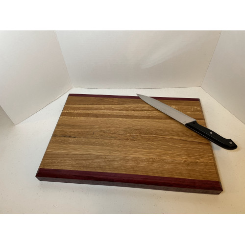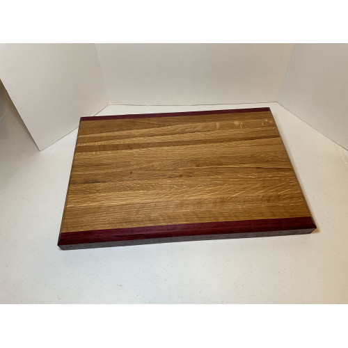 Handmade cutting board. 12" x 17" x 1 1/4" thick. The wood is White Oak and Purple Heart.